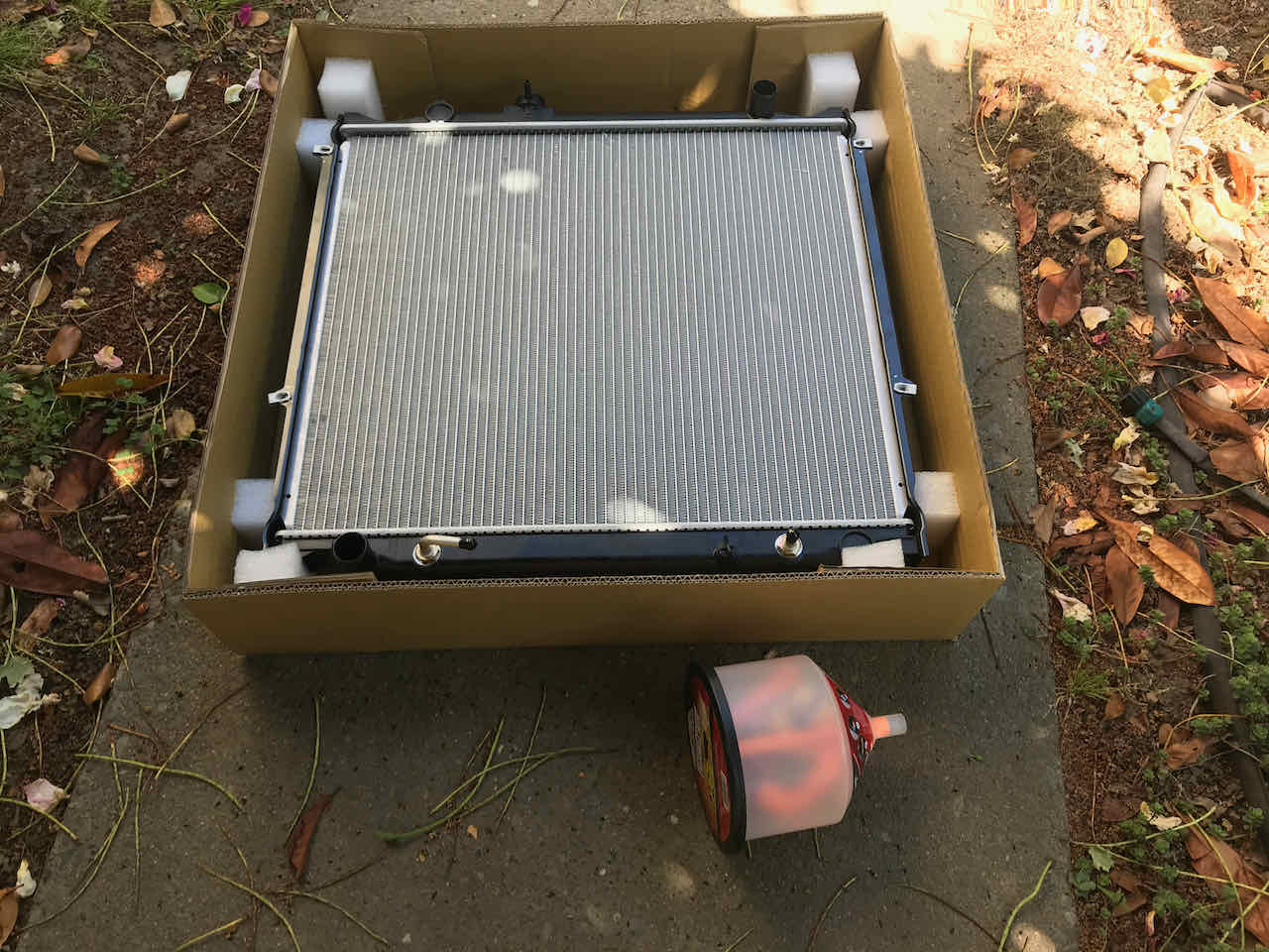 It didn’t occur to me to flush the system before installing the new radiator. I’ll remember this next time!